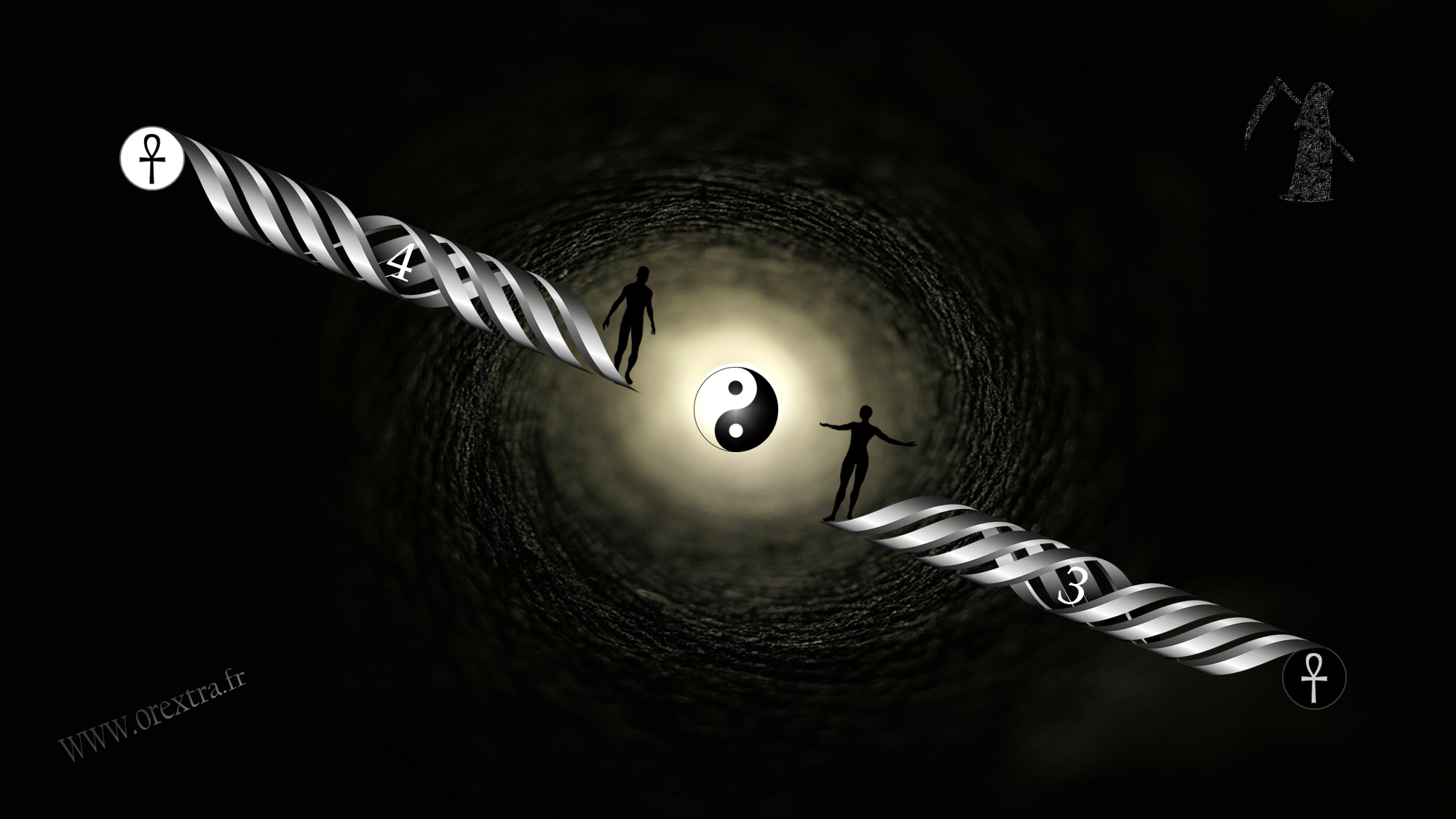 Une porte infernale. Celui qui l’enfoncerait hérite d’un pouvoir maudit, le dédoublement en 3, cette faille d’esprit où l’on devient à la fois saint, oracle et prisonnier du Losange InFernal.